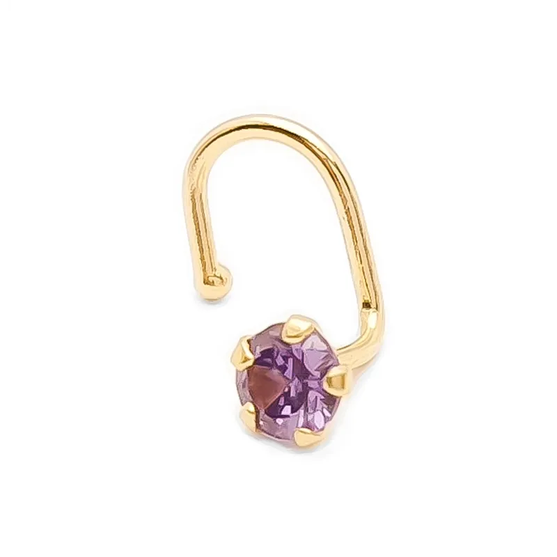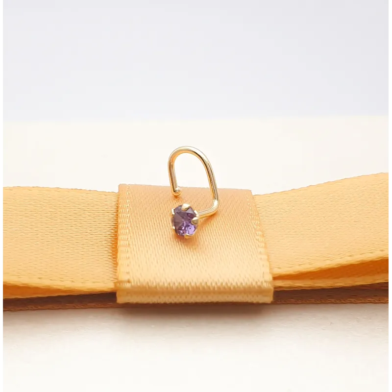Złoty 585 Kolczyk Piercing Do Nosa Fioletowa Cyrkonia