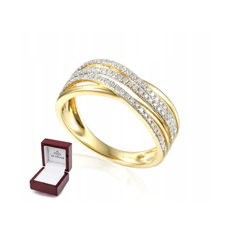 ZŁOTY 585 PIERŚCIONEK Z BRYLANTAMI 0,25ct SZEROKI
