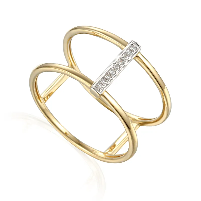 Modny Złoty Pierścionek 585 z Diamentami