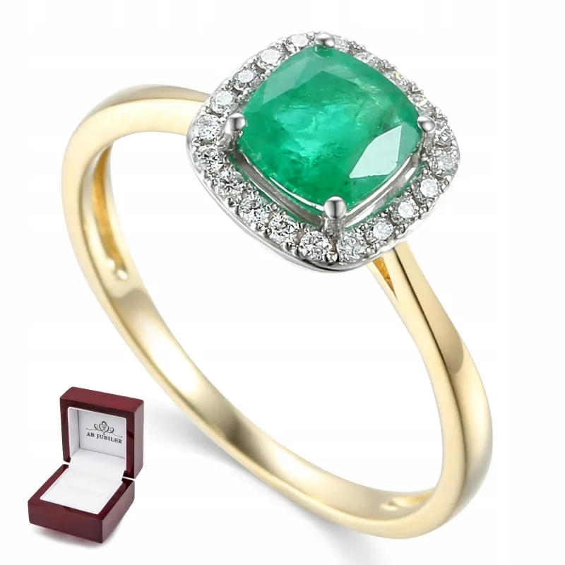 ZŁOTY 585 PIERŚCIONEK ZE SZMARAGDEM I DIAMENTAMI ( NA ZAMÓWIENIE )