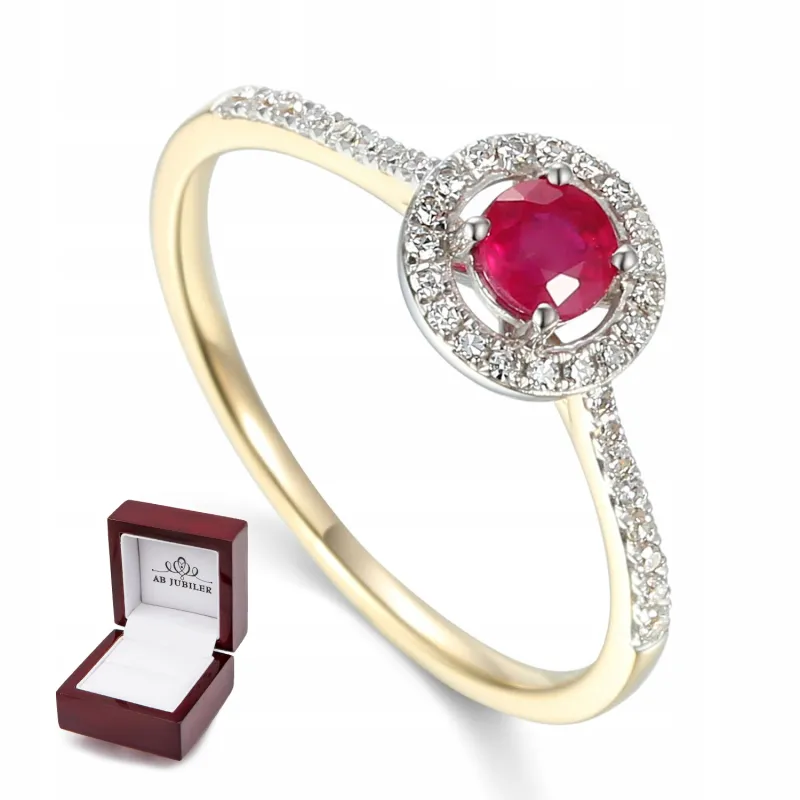 ZŁOTY PIERŚCIONEK RUBIN I DIAMENTY PRÓBA 585 ( NA ZAMÓWIENIE )