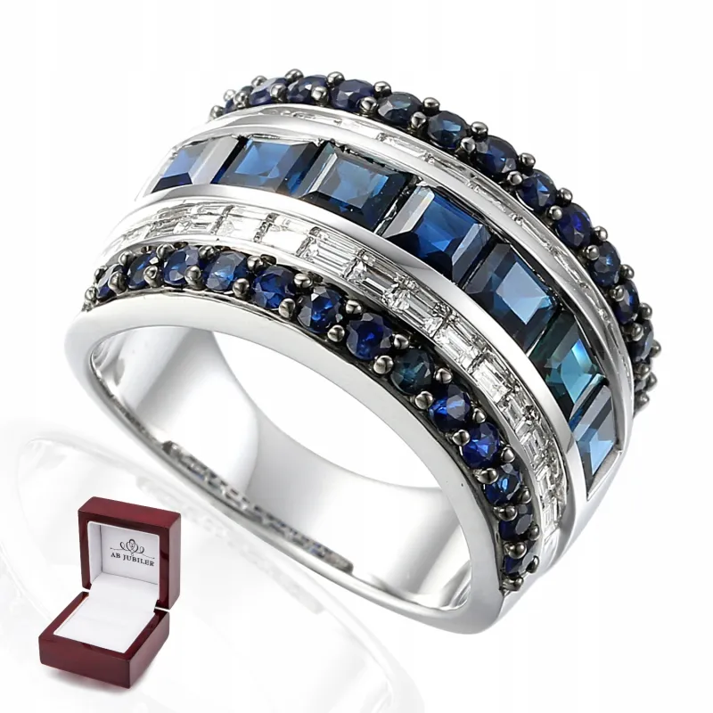 PIERŚCIONEK BIAŁE ZŁOTO SZAFIR DIAMENTY PRÓBA 585 ( NA ZAMÓWIENIE )