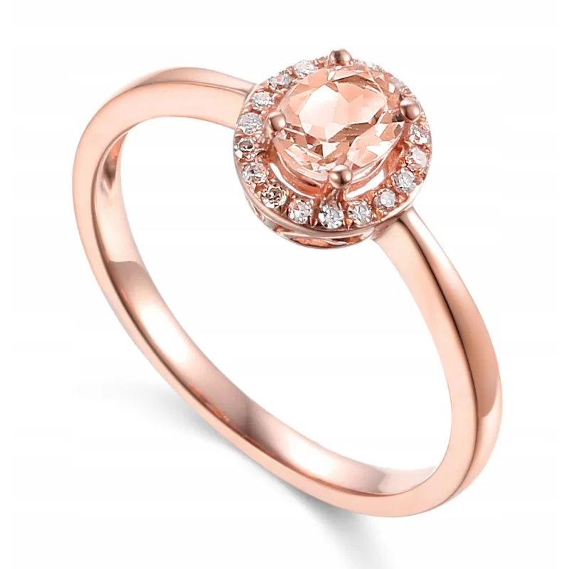 PIERŚCIONEK MORGANIT I DIAMENTY 585 RÓŻOWE ZŁOTO
