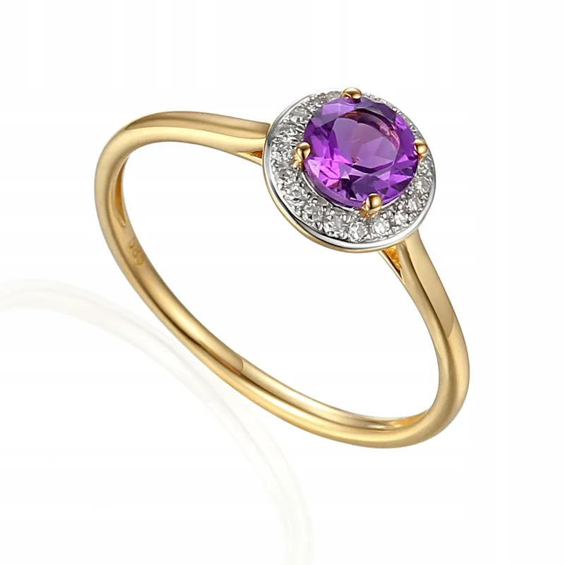 PIERŚCIONEK ZŁOTY 585 AMETYST DIAMENTY NA PREZENT ( NA ZAMÓWIENIE )