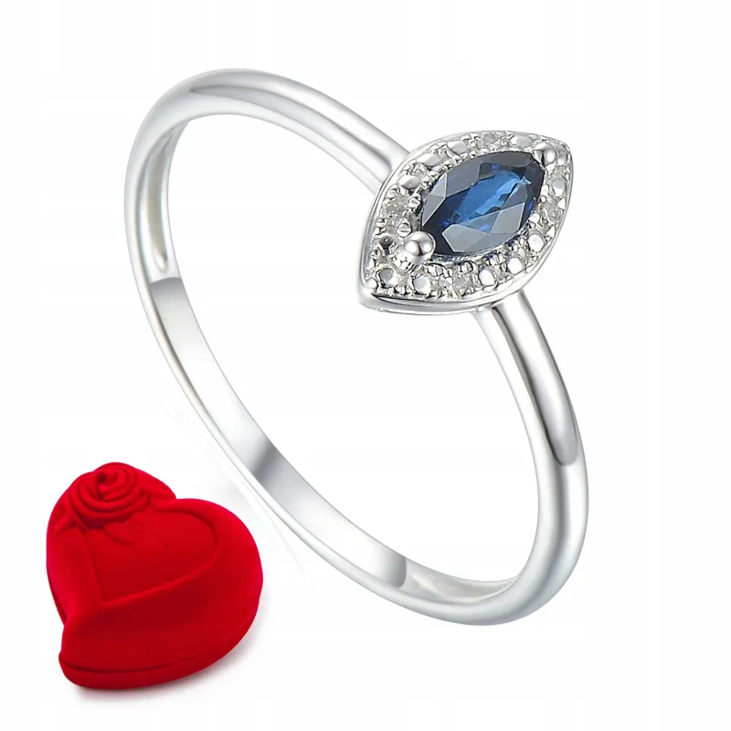 PIERŚCIONEK BIAŁE ZŁOTO SZAFIR DIAMENTY PRÓBA 585 ( NA ZAMÓWIENIE )