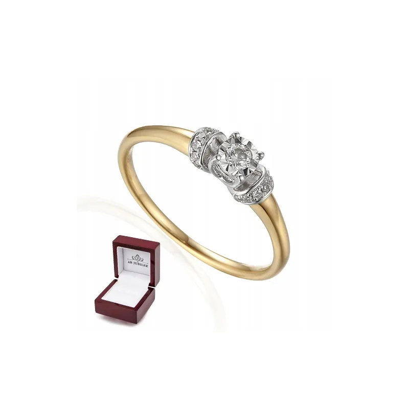 ZŁOTY 585 PIERŚCIONEK ZARĘCZYNOWY DIAMENTY