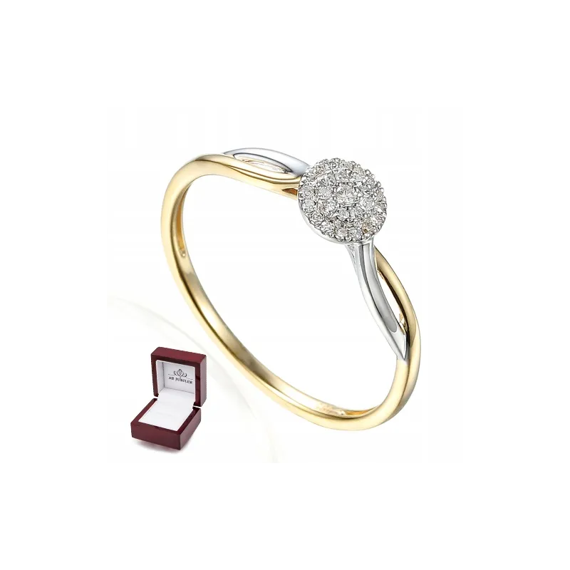 ZARĘCZYNOWY ZŁOTY 585 PIERŚCIONEK DIAMENTY