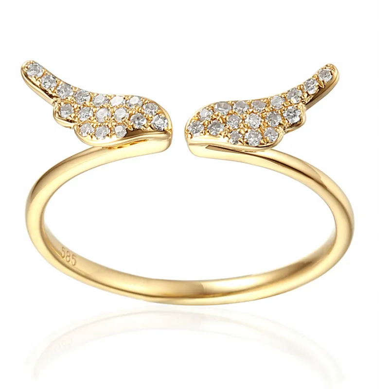 ZŁOTY 585 PIERŚCIONEK SKRZYDŁA DIAMENTY PREZENT