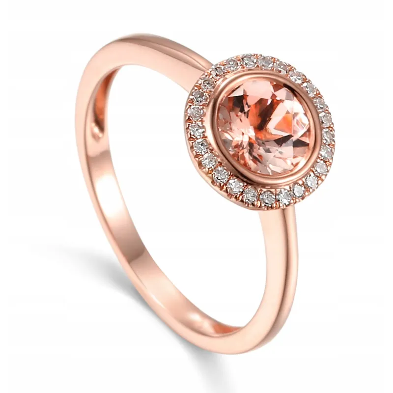 PIERŚCIONEK MORGANIT DIAMENTY 585 RÓŻOWE ZŁOTO ( NA ZAMÓWIENIE )