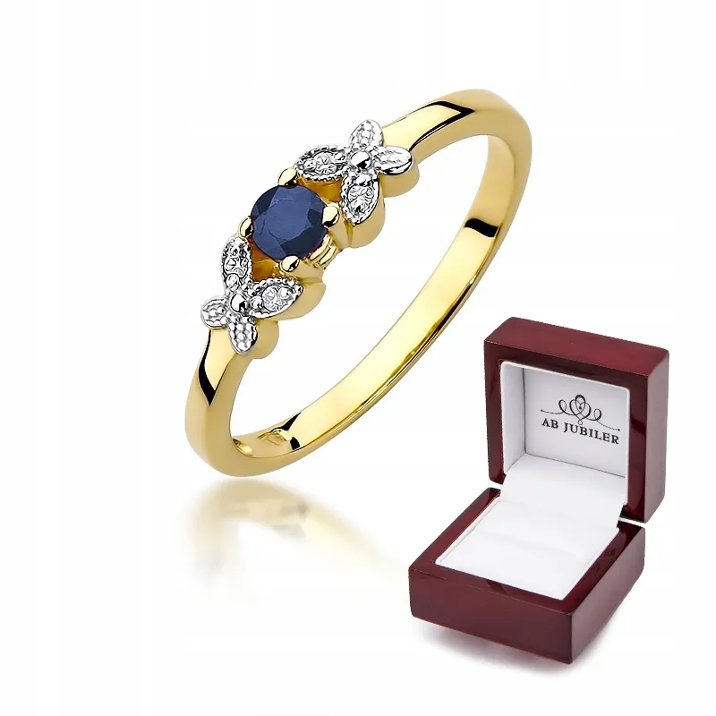 Złoty Pierścionek Zaręczynowy Szafir Diamenty