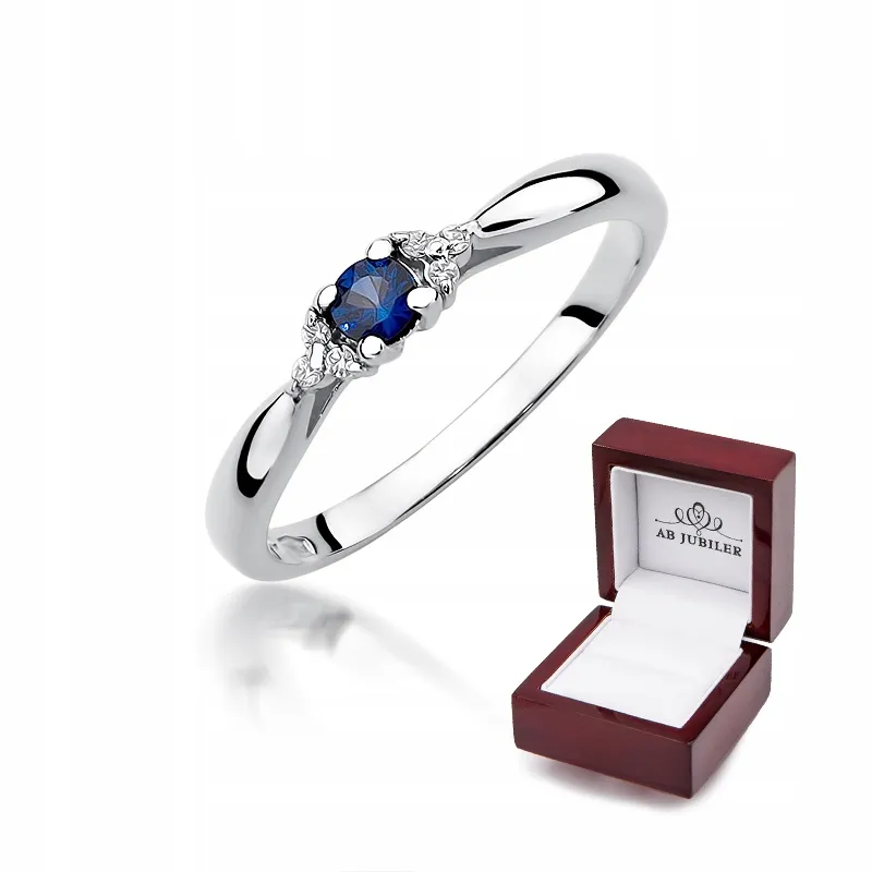 Pierścionek Zaręczynowy Białe Złoto Szafir Diamenty