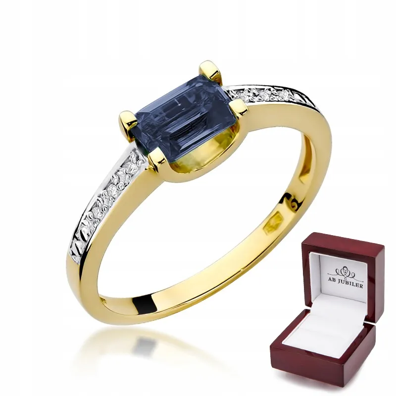 Złoty Pierścionek Zaręczynowy Szafir Diamenty