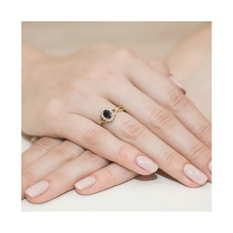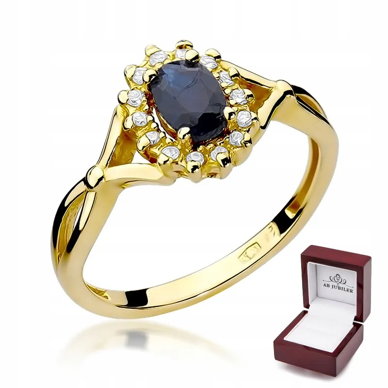 Złoty Pierścionek Zaręczynowy Szafir Diamenty