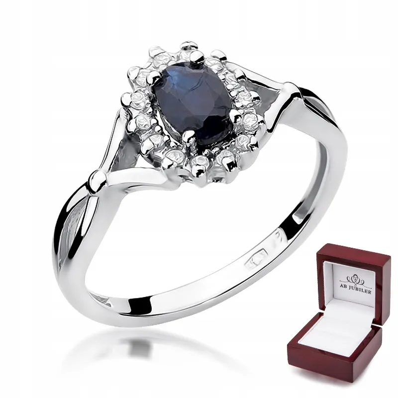 Pierścionek Zaręczynowy Białe Złoto Szafir Diamenty