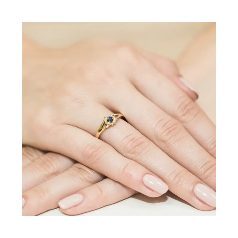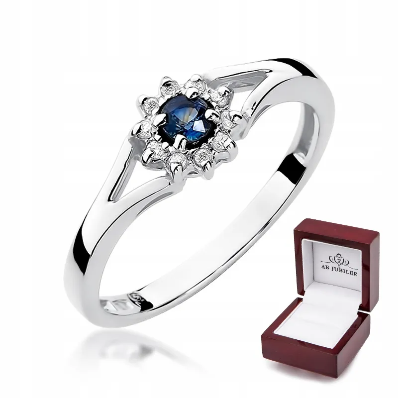 Pierścionek Zaręczynowy Białe Złoto Szafir Diamenty