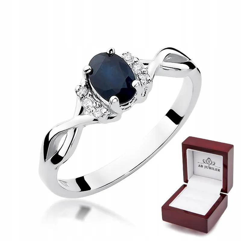 Pierścionek Szafir Diamenty Białe Złoto na Prezent