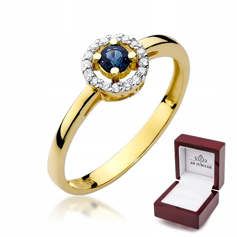 Złoty Pierścionek Zaręczynowy Szafir Diamenty