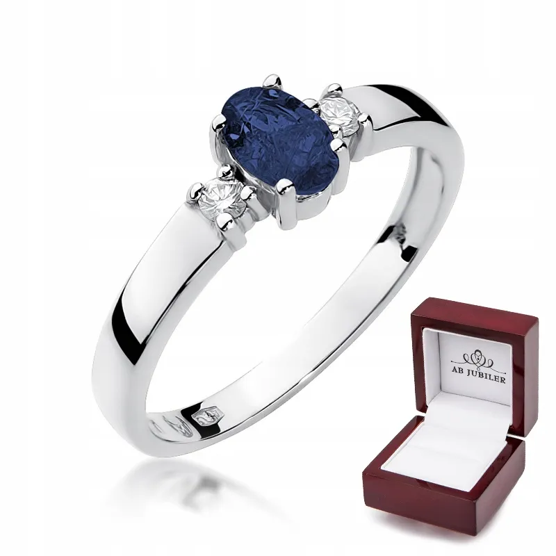 Pierścionek Zaręczynowy Białe Złoto Szafir Diamenty