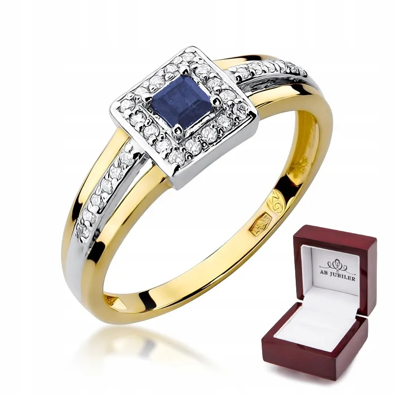 Pierścionek Szafir 0,20CT Diamenty Złoto