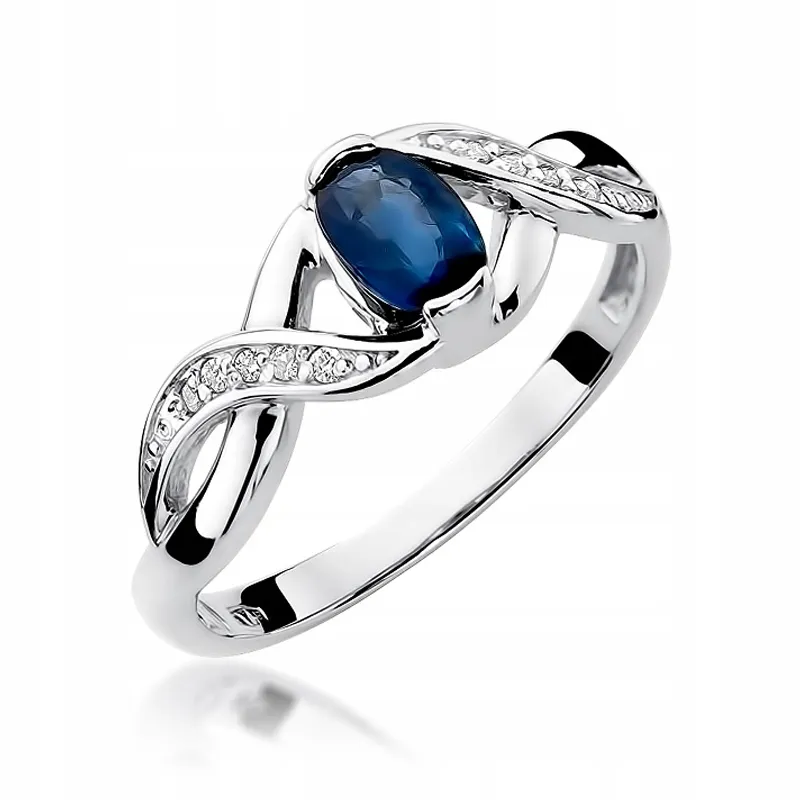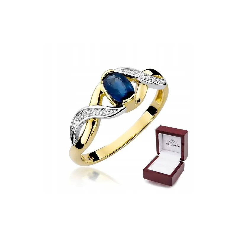 Pierścionek Złoty 585 Szafir Diamenty