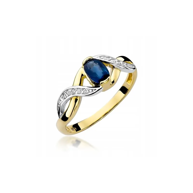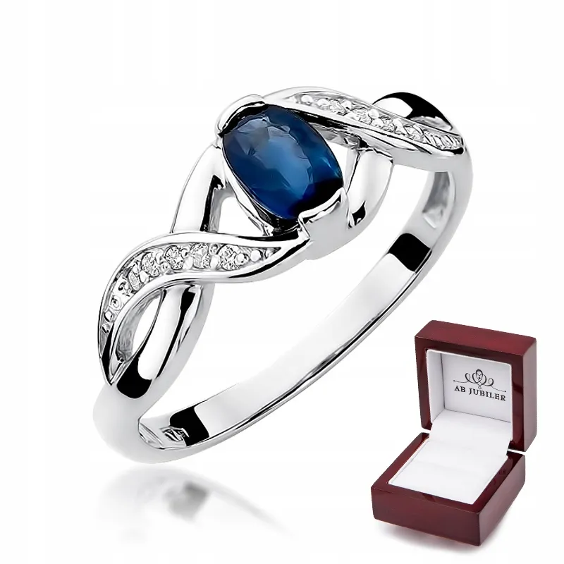 Pierścionek z Białego Złota Szafir Diamenty