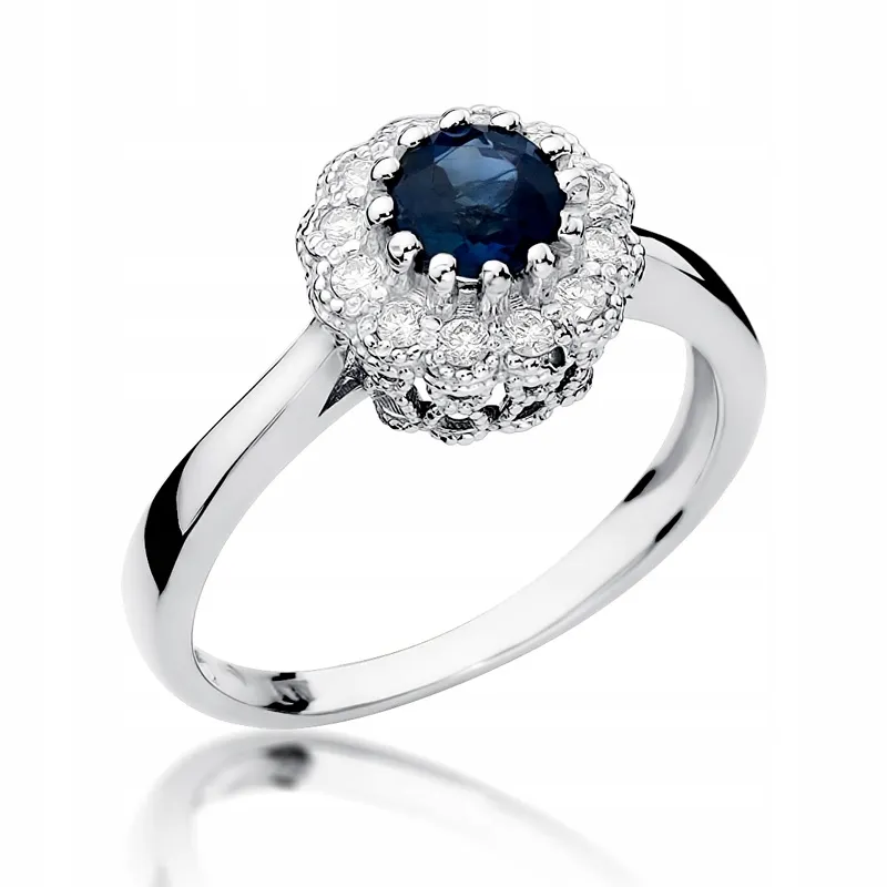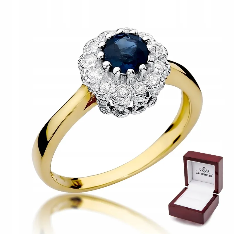 Złoty Pierścionek Zaręczynowy Szafir Diamenty