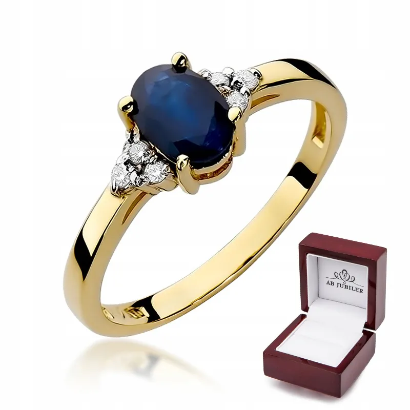 Złoty Pierścionek Szafir Diamenty