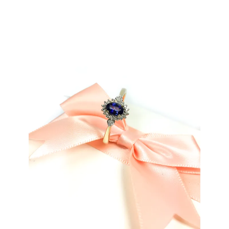 Pierścionek Złoty 585 Szafir i Brylanty Grawer