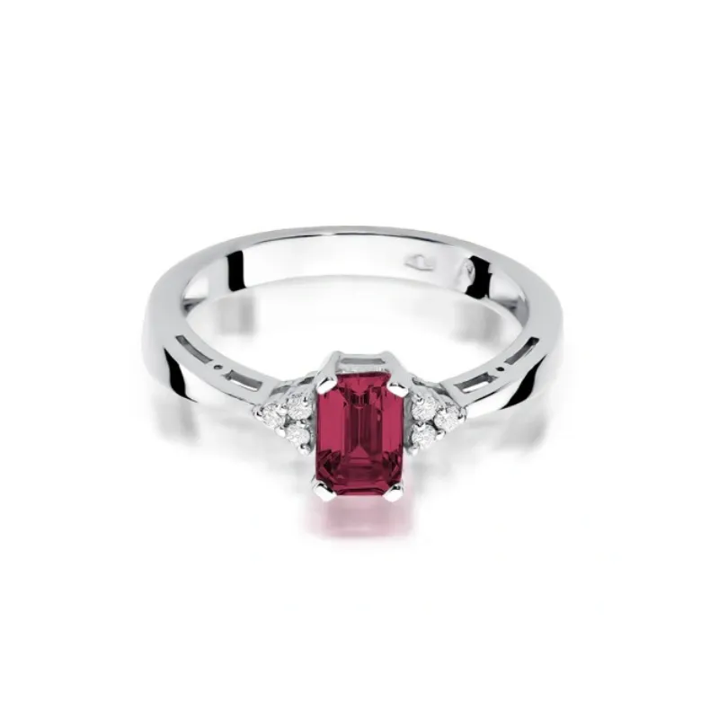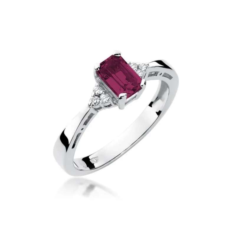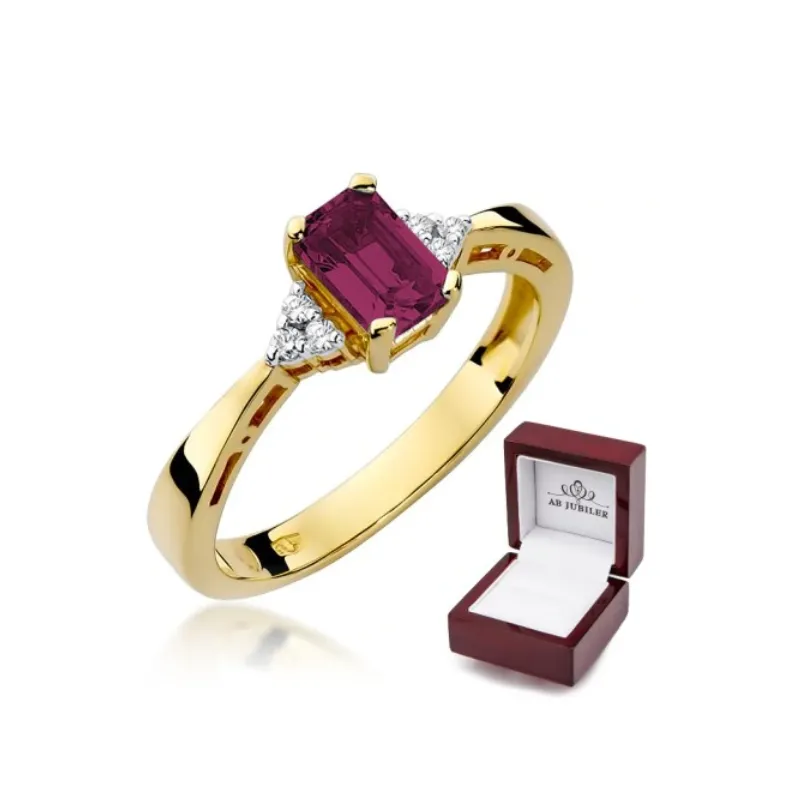 Złoty Pierścionek Zaręczynowy 585 Rubin Diamenty
