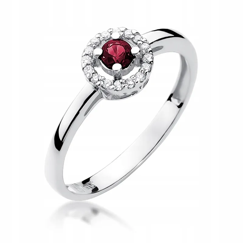 Pierścionek Złoty 585 Rubin Diamenty