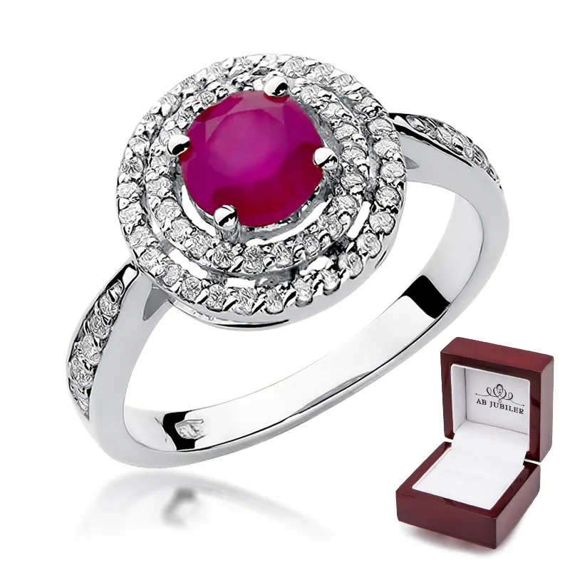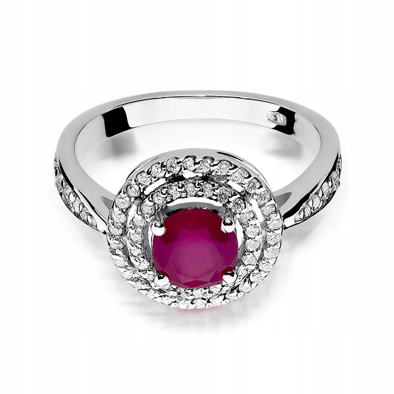 Pierścionek Białe Złoto Rubin Brylanty