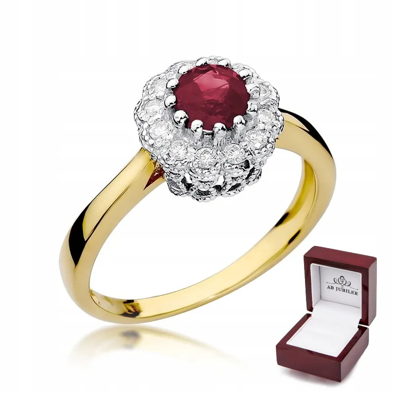 Pierścionek Żółte Złoto Rubin Diamenty