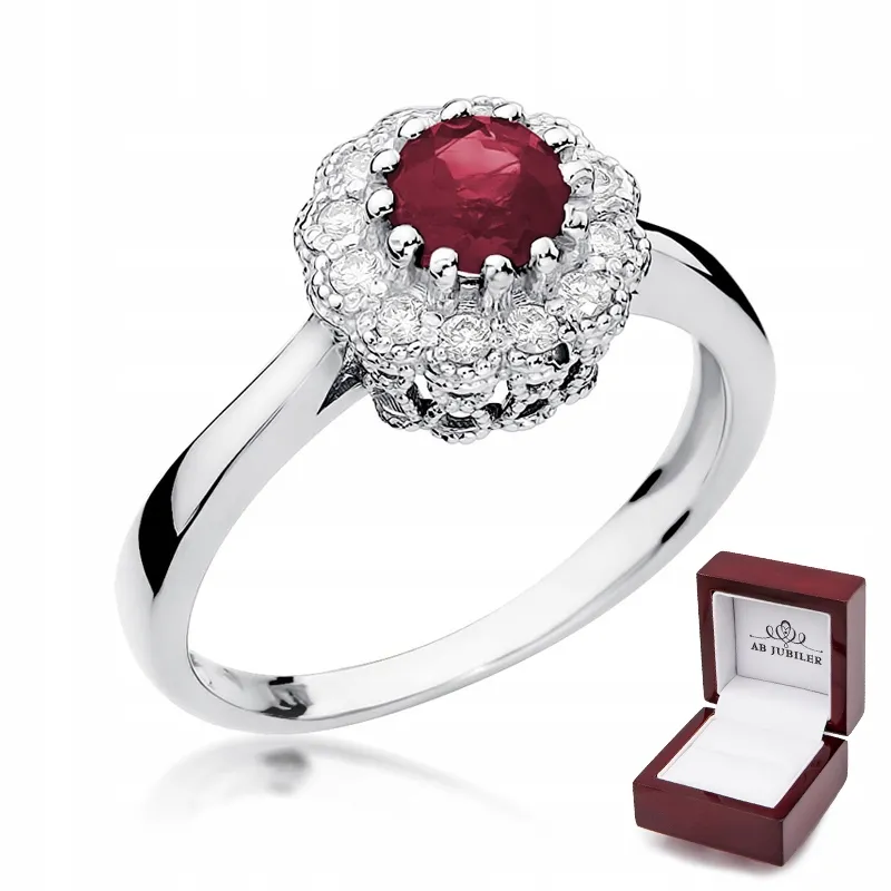 Pierścionek Białe Złoto Rubin Diament