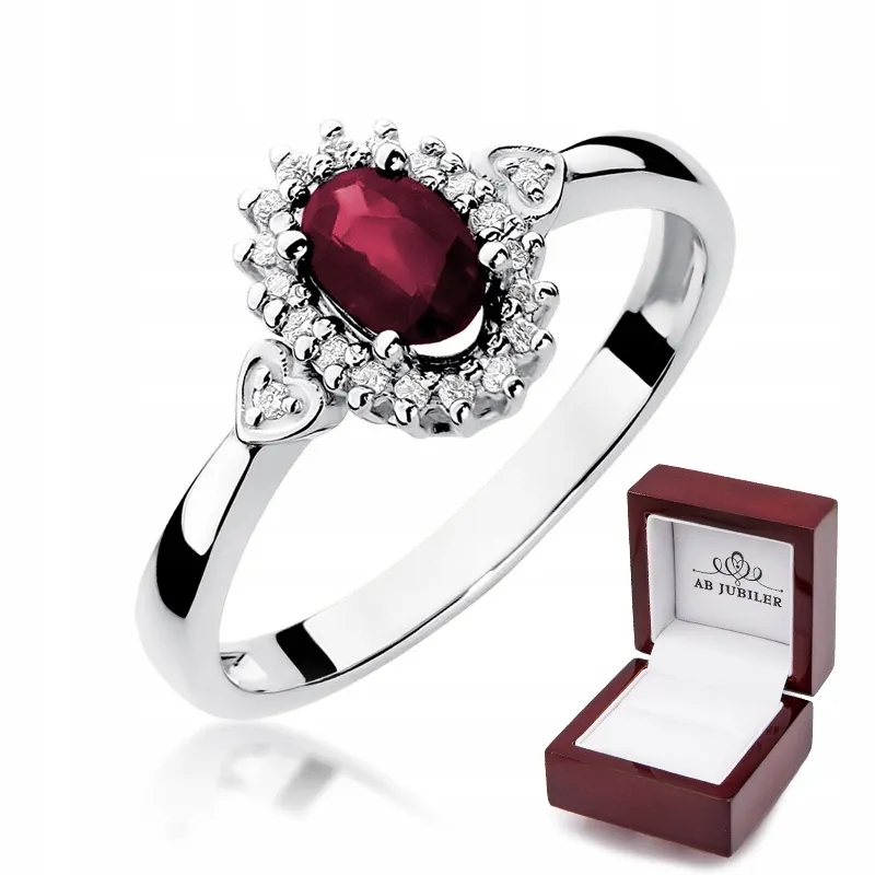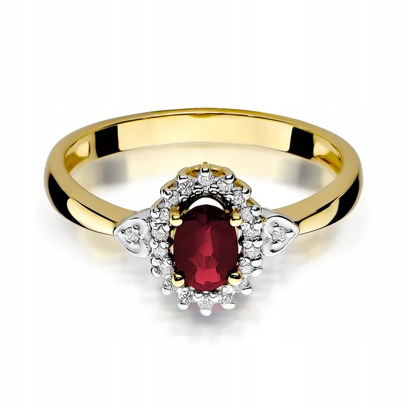 Pierścionek Złoty Rubin z Brylantami