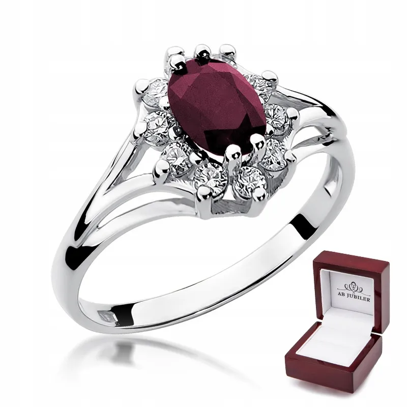 Pierścionek 585 w Białym Złocie Rubin i Diamenty