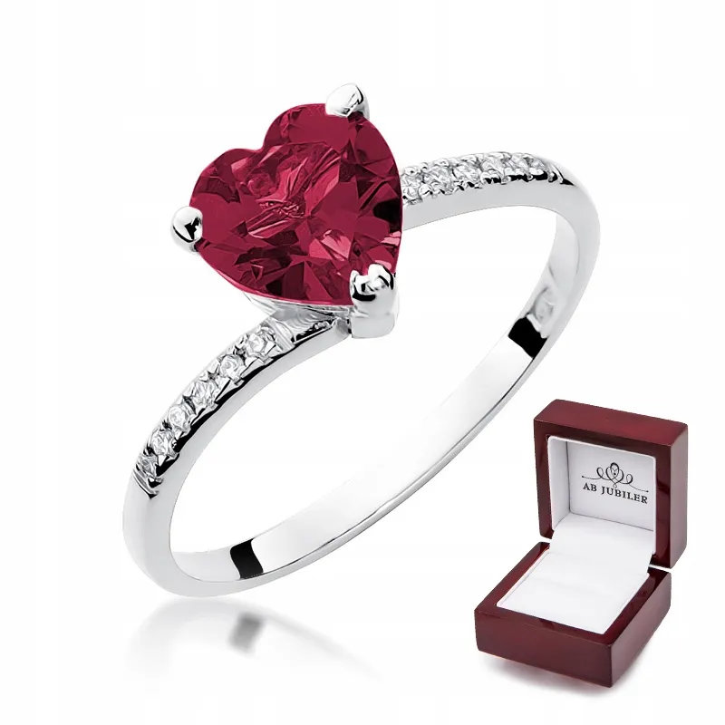 Pierścionek Białe Złoto Rubin Diamenty na Prezent