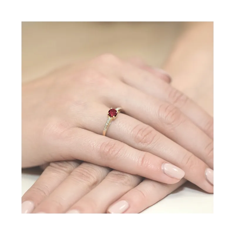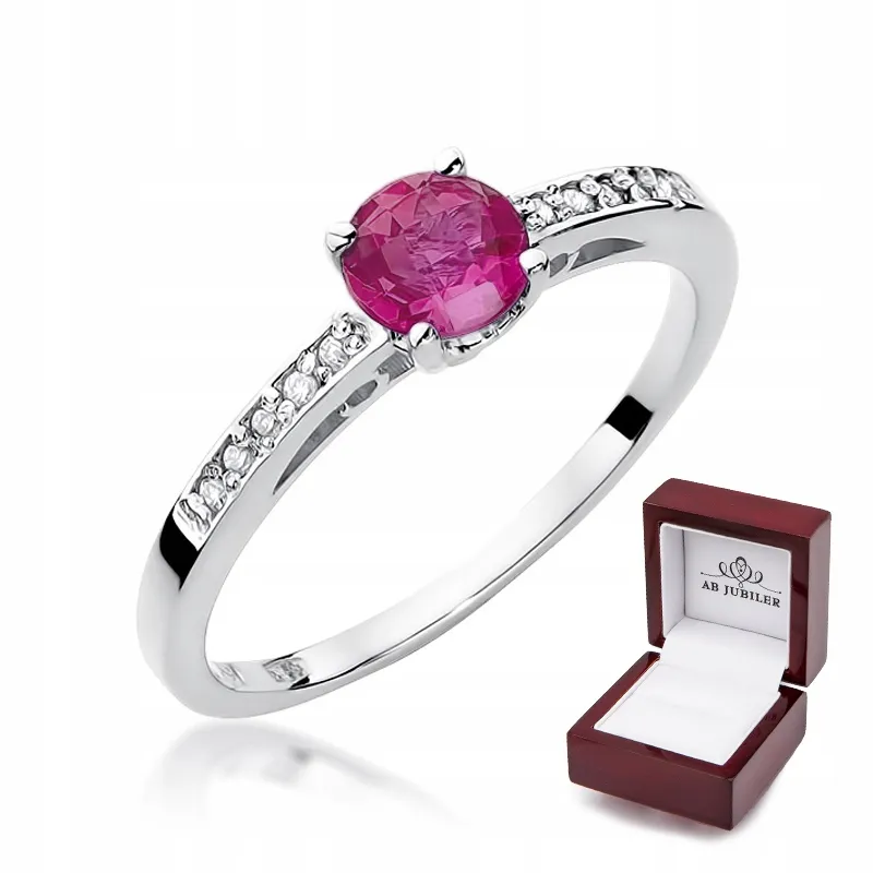 Pierścionek Zaręczynowy Białe Złoto Rubin Diamenty