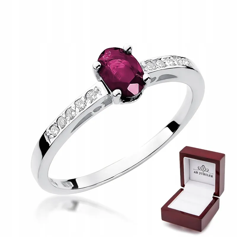 Pierścionek Zaręczynowy Rubin Diamenty Białe Złoto