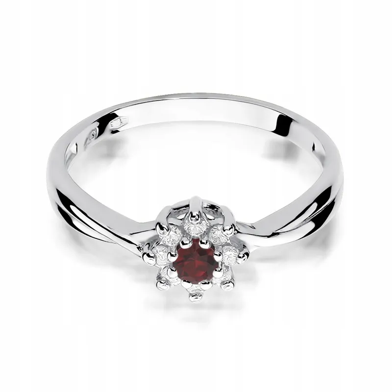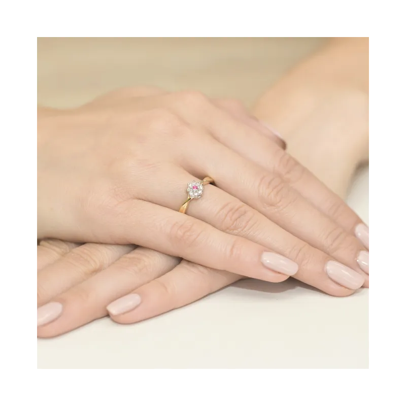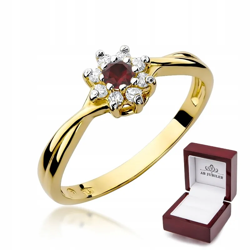 Pierścionek 14K Żółte Złoto Rubin Brylanty