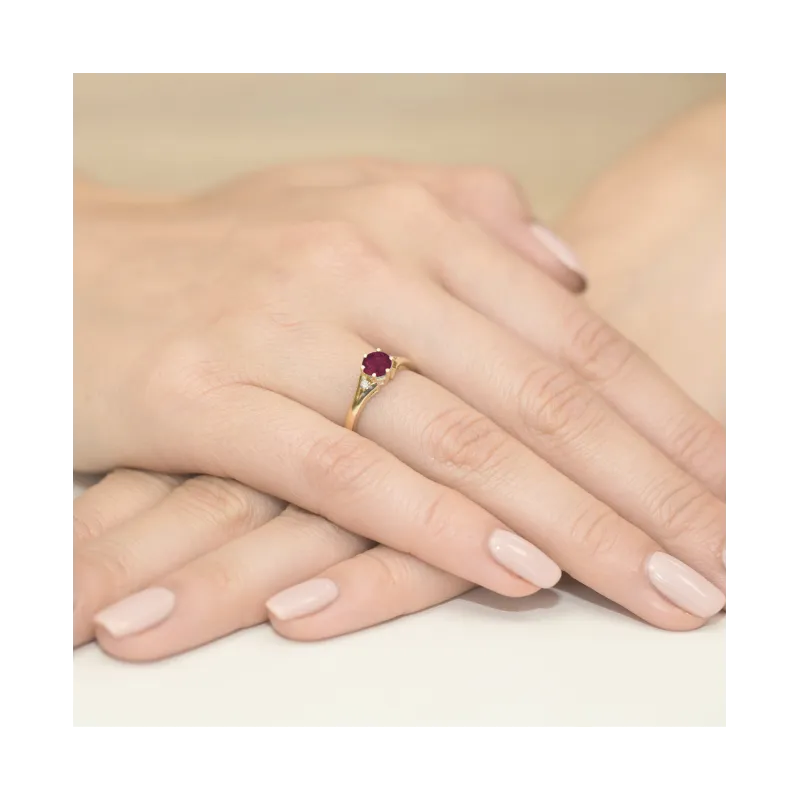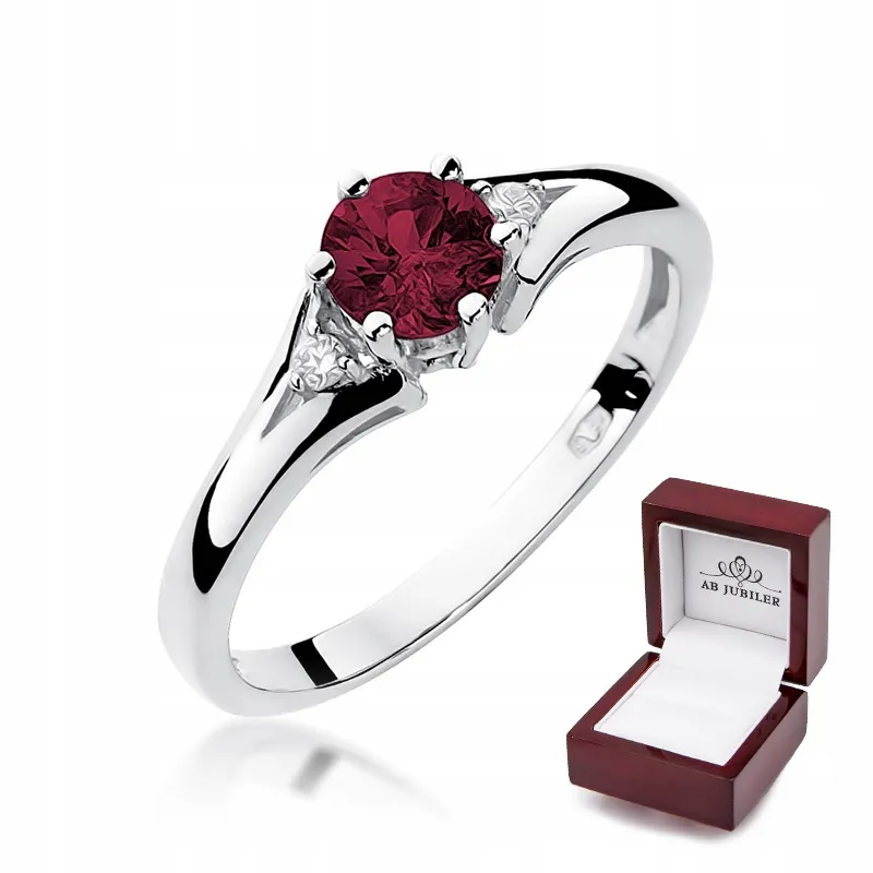 Złoty Zaręczynowy Pierścionek Rubin Białe Złoto