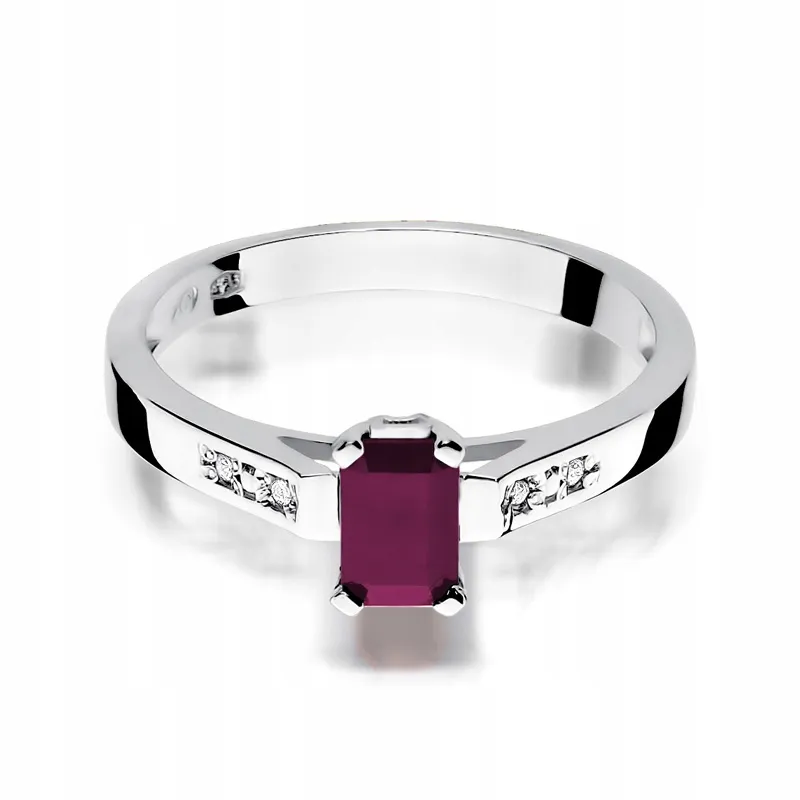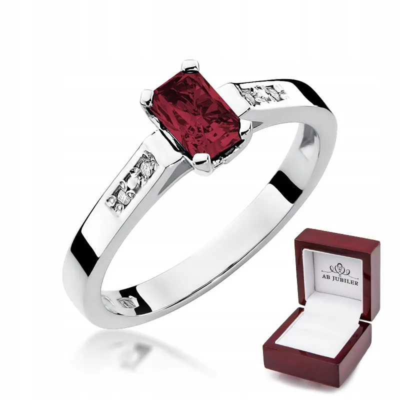 Pierścionek Białe Złoto Rubin Diamenty