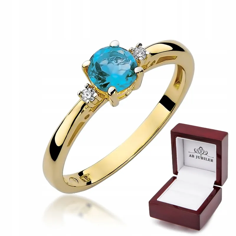 Złoty 14K Pierścionek z Topazem i Brylantami