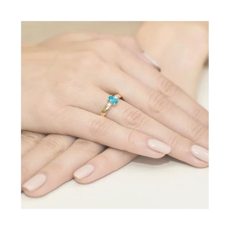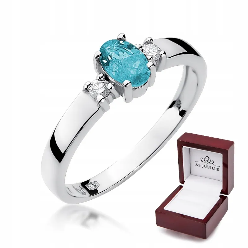 Pierścionek Białe Złoto Topaz Brylanty