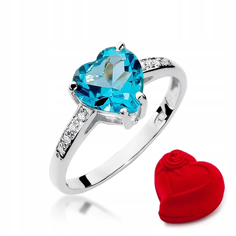 Pierścionek Zaręczynowy Białe Złoto Topaz Brylant