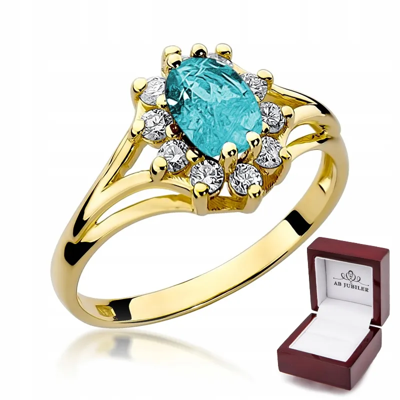 Złoty 14K Pierścionek z Topazem i Brylantami