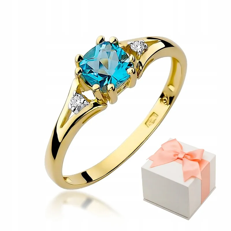 Pierścionek Żółte Złoto Topaz Brylanty