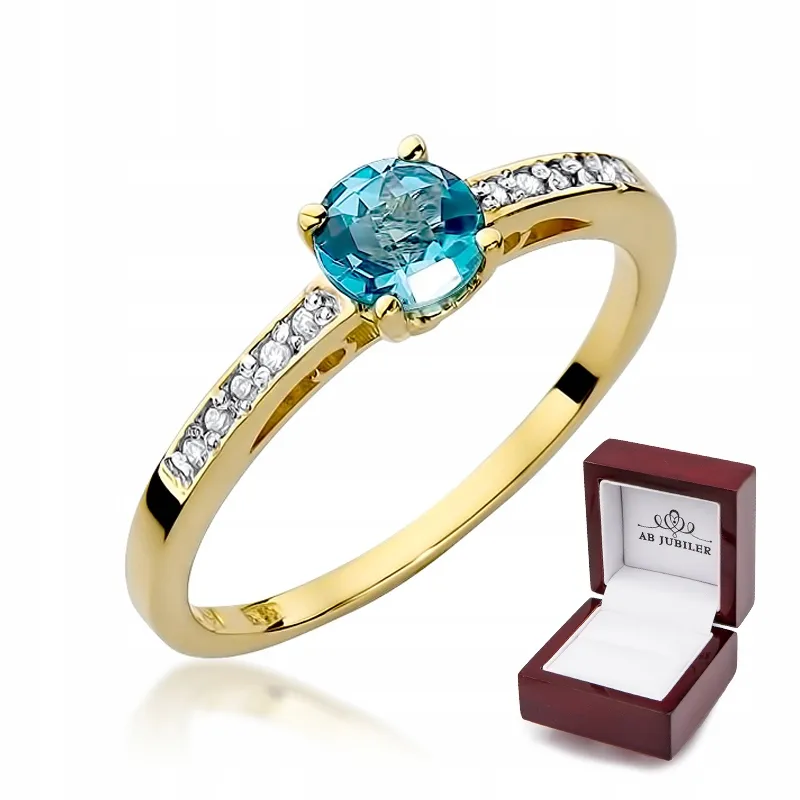 Złoty 14K Pierścionek Zaręczynowy Topaz Brylanty