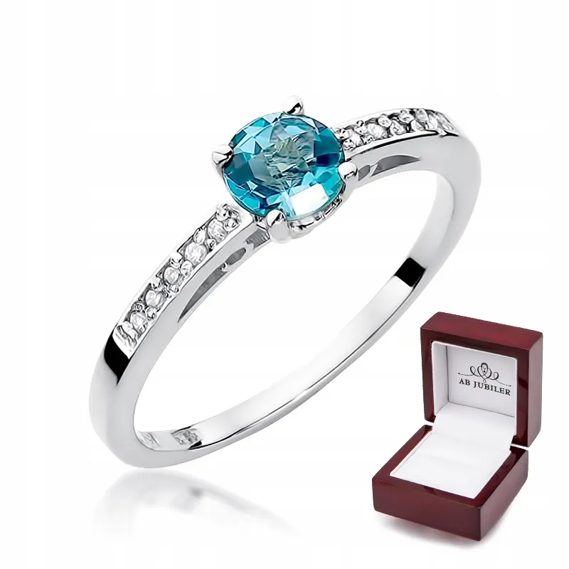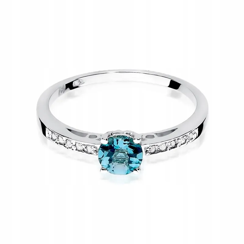 Pierścionek Zaręczynowy Topaz Brylanty Białe Złoto
