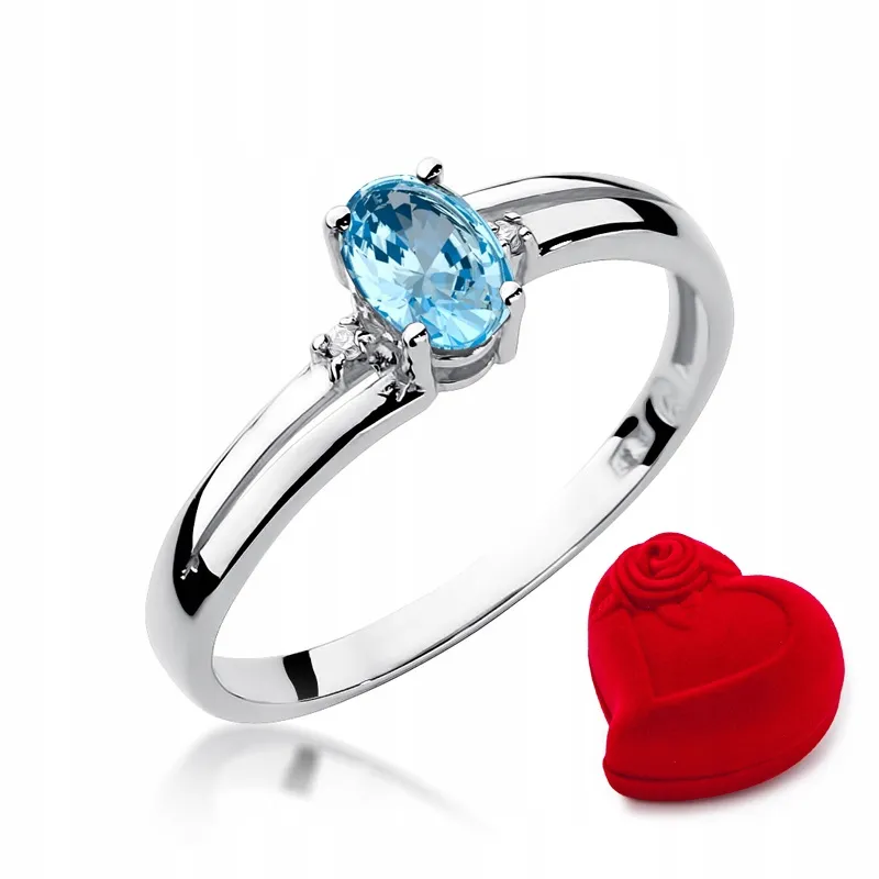 Pierścionek Zaręczynowy Białe Złoto Topaz Brylanty