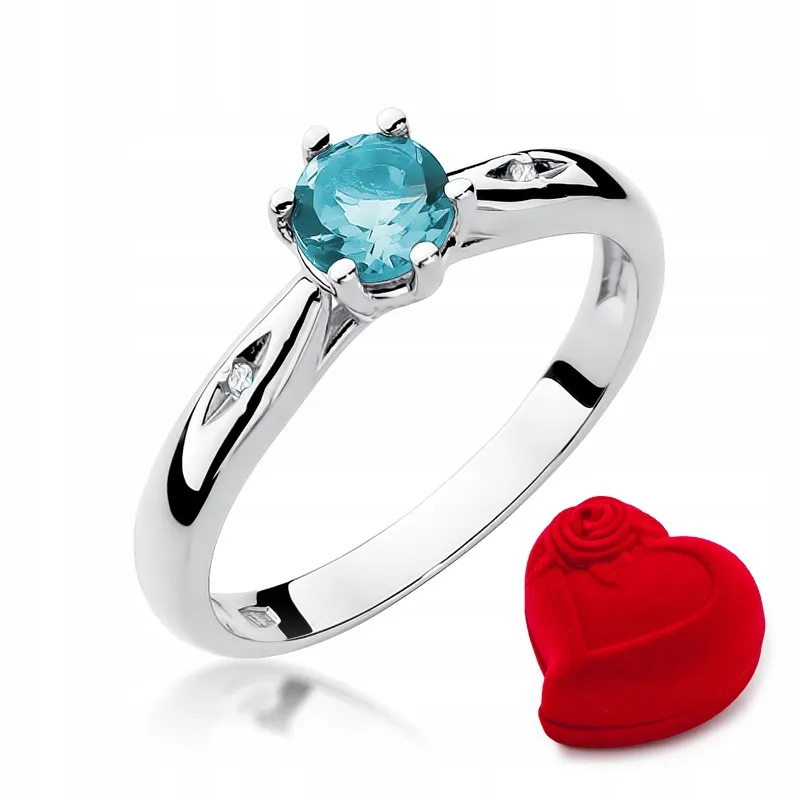 Pierścionek Zaręczynowy Białe Złoto Topaz Diamenty